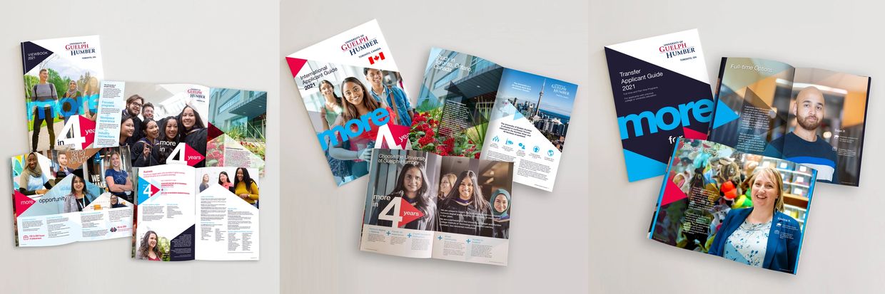 We created 3 dynamic and branded guide books with a focus on student perspectives and requirements - ViewBook, Transfer Guide and International Guide to help promote and inform all the new students, parents and guidance counsellors whats available at the University of Guelph Humber.